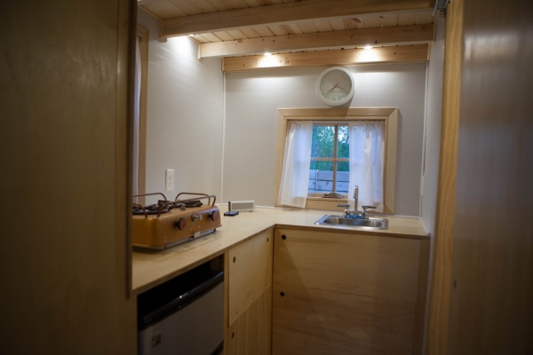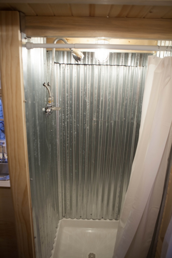 Este espacio excepcional también incluye un baño completo con un inodoro de compostaje y una ducha de metal corrugado con agua caliente y fría.